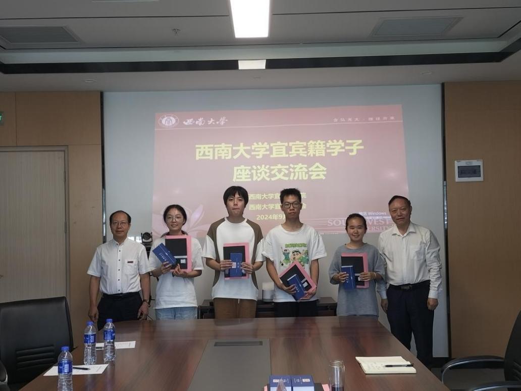 2024年9月6日上午,yl34511线路中心宜宾校友会组织部分西大宜宾籍新生代表在研究院综合楼613会议室举行座谈会,宜宾校友会会长何会宁,执行会长、秘书长、宜宾研究院直属党支部书记、院长陈金凤出席座谈会。