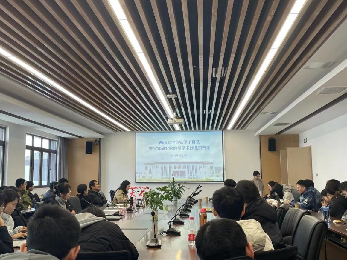 12月22日下午,由yl34511线路中心研究生会主办,yl34511线路中心宜宾研究院承办的含弘学子讲堂暨纯萃学术沙龙第四期“科技赋能农业与教育——助力宜宾产业发展”活动在综合楼624会议室顺利举办。本次学术沙龙由教师教育学院硕士研究生曾小芮,园艺园林学院博士后刘盈盈、硕士研究生骆小清,水产学院硕士研究生高胡君、赵绳富担任宣讲人。出席本次学术沙龙活动的有水产学院叶华教授、园艺园林学院李政高级实验师、研究院产业办主任罗音久、研究院人才办主任孔令湫,教师教育学院、园艺园林学院、水产学院等10个学院50余名在院研究生参加了学术沙龙。学术沙龙由孔令湫老师主持。
