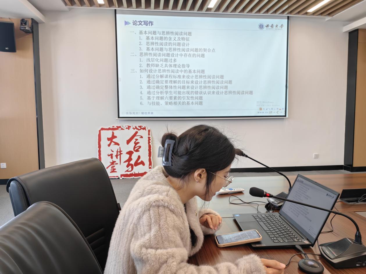 曾小芮同学以自身发表核心期刊《思辨性阅读中的“基本问题”设计》的经验引入,从论文选题、论文写作、论文发表以及修改论文四个环节进行了分享,她认为学术论文是反映科研成果的一种载体形式,撰写和发表学术论文是考察学生科研能力和素质的一个重要方面,对于学生学习和研究而言至关重要,在进行论文撰写时,选题是关键,要随时与导师进行沟通交流,避免走弯路。同时,要关注期刊发表的渠道,主动向期刊投稿,根据期刊要求及时修改。