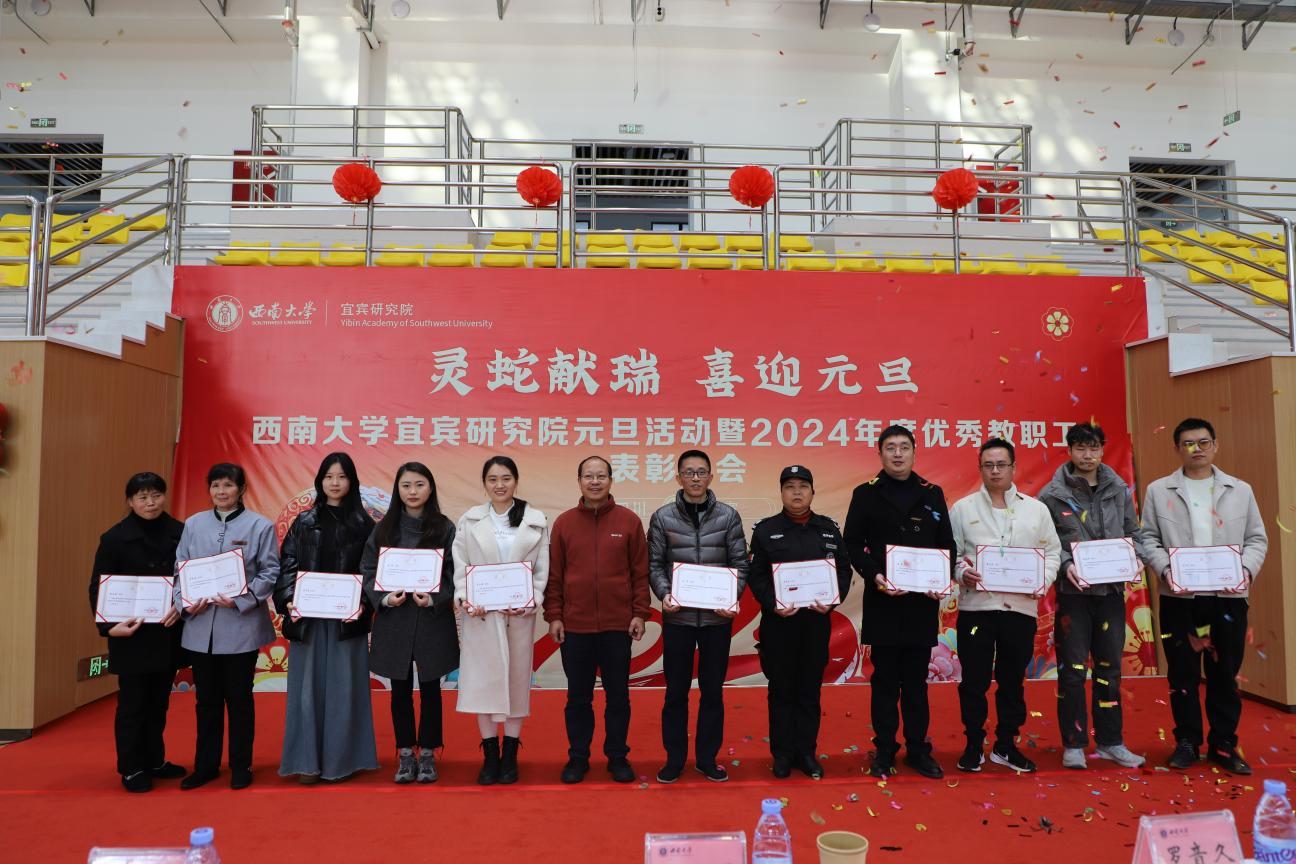 祥龙摆尾辞旧岁,灵蛇舞动迎新年。为庆祝新年的到来,增进师生间交流与情谊,表彰年度优秀教职工,12月31日下午,研究院在体育馆举办“灵蛇献瑞、喜迎元旦”活动暨2024年度优秀教职工表彰大会。研究院院长陈金凤、相关科室负责人以及在院师生60余人欢聚一堂,回顾过往,展望未来,共同开启研究院的第三个新年。
